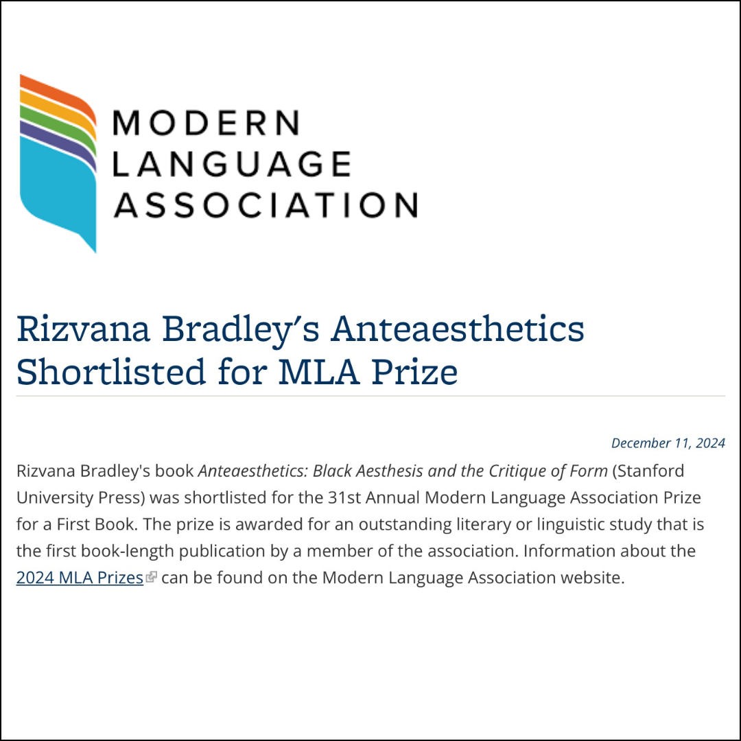 “Bradley’s Anteaesthetics: Black Aesthesis and the Critique of Form is a monumental text, as theoretically agile as it is utterly majestic in its scope.”